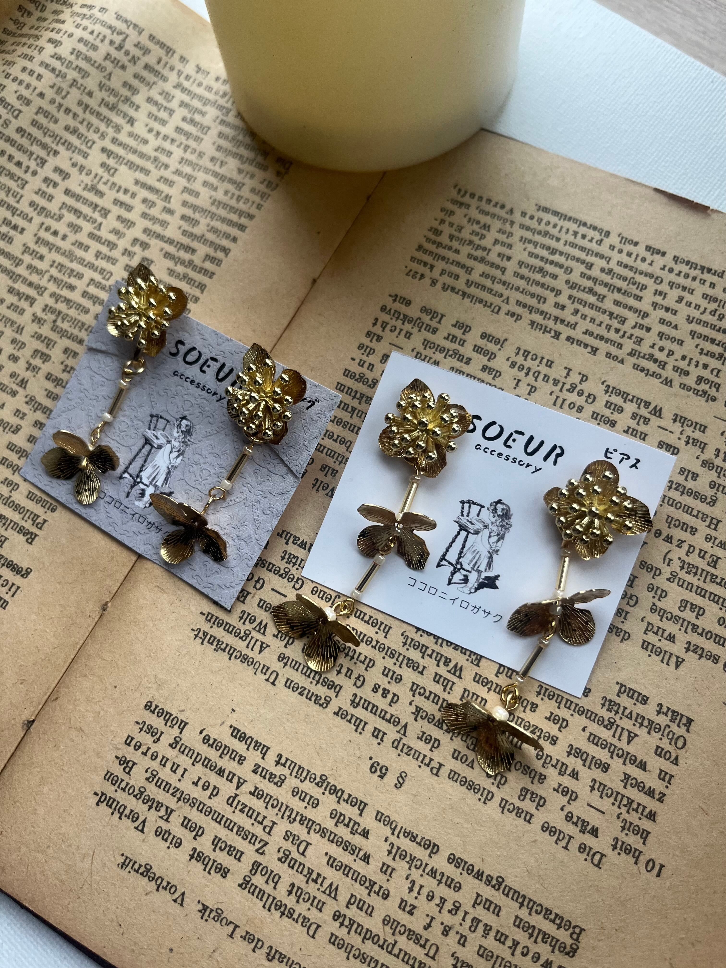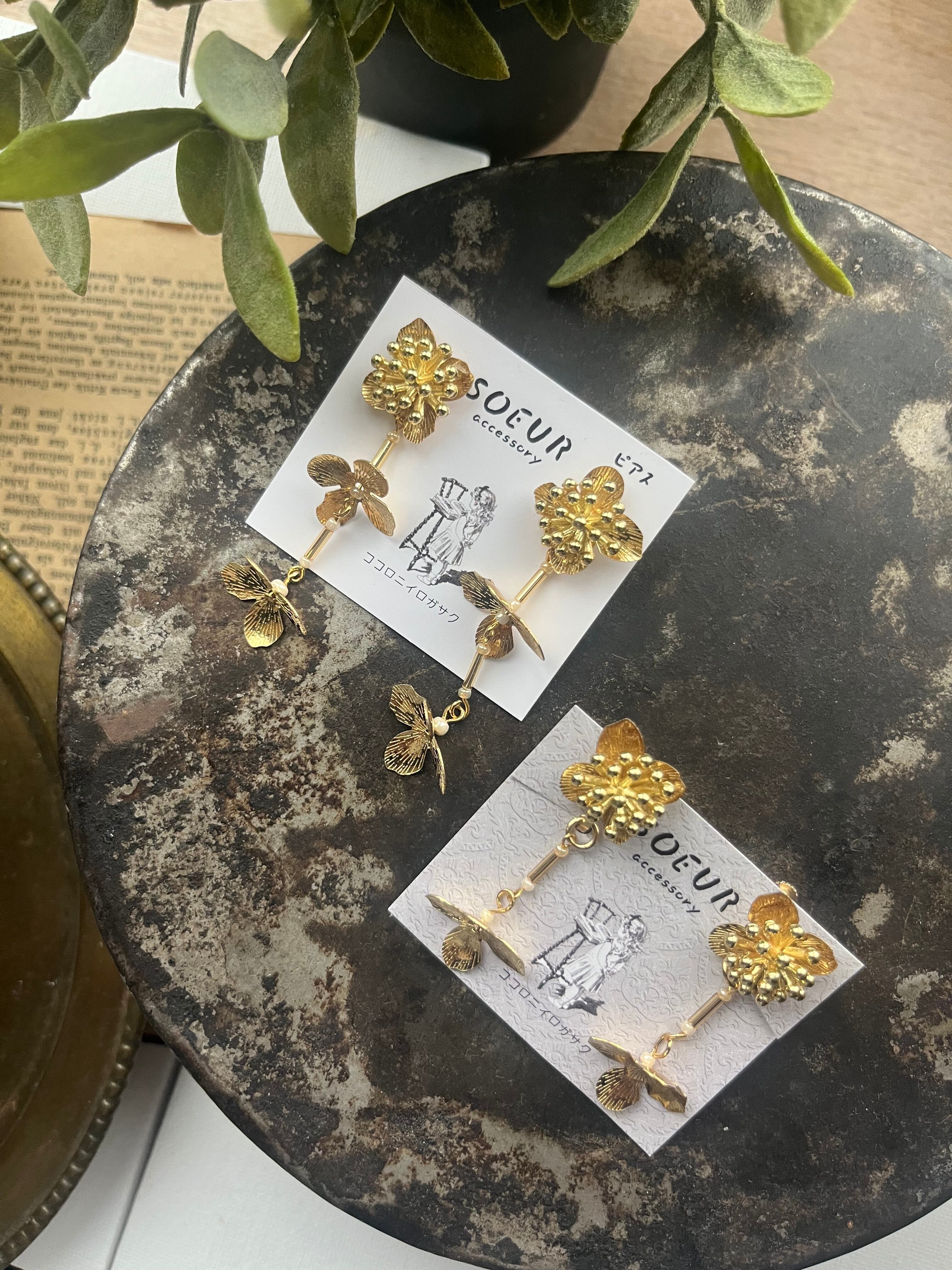 繊細なゴールドフラワーに、ゆらりと揺れる花びらモチーフ。